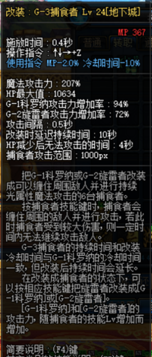 经过计算,在没有装备影响的前提下单位时间内,平均输出最高的G系列就是G1,在连按G1技能键后G1的攻速会大大提升(顶级豌豆射手),而且G1有很强的压制力。缺点是输出环境苛刻,要与敌怪同x轴并且需要不间断输出才能伤害最大化。相比G2瞬间爆发完后走位拉开,G3的全自动化,G1的应用场景并不多,而且异化9主要提升的是G2G3,由于前期过渡装备可以选择E2套装大黄蜂3过渡,所以G1是前期用来打持续输出的选择,主要应用场景有E2哥布林2图平推哥布林、E3黑色大地当你是1p并且被变成怪物后G1还能对奥兹玛进行豌豆攻击、白图刷深渊压制APC等;在使用G1输出时,建议配合毒蛇炮和空投进行无缝压制。鉴定为人上人。