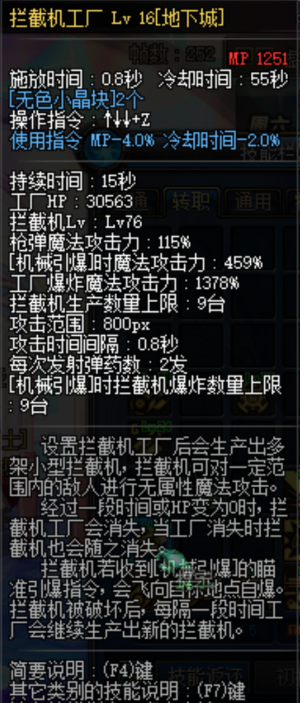 工具人技能,火力压制白图小怪以及深渊APC能力出色,属召唤物能够吸引仇恨,CD短,不会触发无色感应,缺点是攻击方式单一,只覆盖X轴,伤害不高,一个典型的压制力火力支援技能,适合阵地战;技能性质为0机动性,我个人认为这是优点,因为在某些场景下为神技,比如虚无2推箱子,蠕动1当插座等。鉴定为夯。