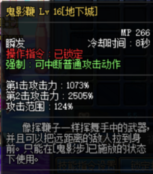 鬼影鞭:纯百分比,作为小技能伤害不错,攻击距离较远,可以聚怪,出伤较快,推荐作为大小墓碑释放完后的补伤害技能。鉴定为人上人。
