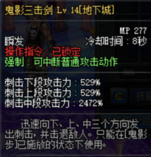 鬼影三剑击:纯百分比,伤害不错,出伤快,补伤害用。鉴定为人上人。